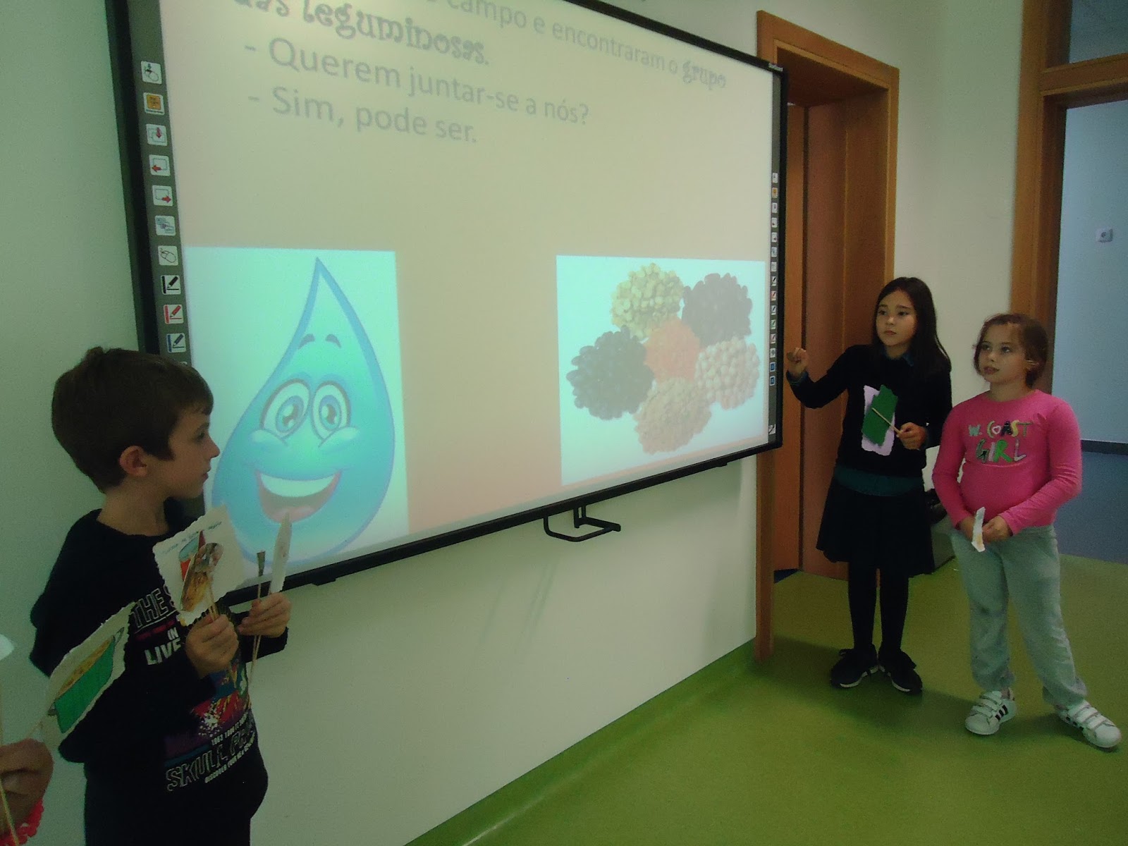 A turma LJ2 está a pesquisar o óleo de milho. Ontem os alunos tiveram o primeiro contacto com a espiga e com os grãos do milho na Biblioteca da nossa escola. A visualização da história “Galinha Ruiva” serviu de motivação.