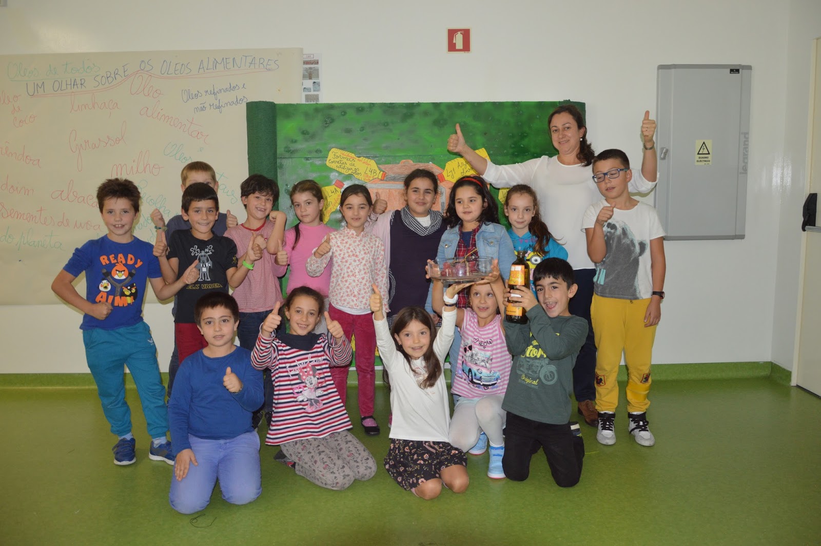 Este alunos são muito curiosos, por isso, fizeram uma experiência na sala de aula e responderam à questão problema: O azeite dissolve-se na água?