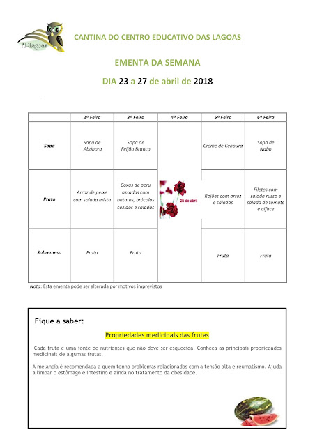 Integrada na "Semana da Saúde" a Escola Básica de Lagoas fez uma recolha de legumes e frutas para entregar numa Instituição de Solidariedade de Ponte de Lima e na sede do nosso Agrupamento para os "IV Encontros com Saúde, com sopas e frutinhas".